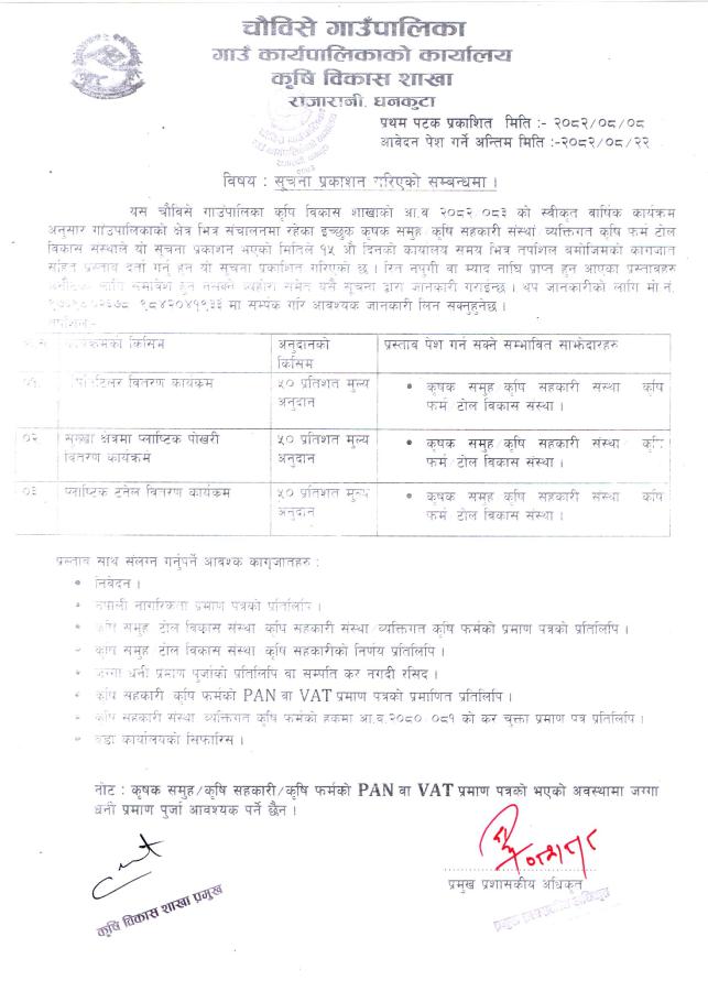 कृषि सम्बन्धी सूचना प्रकाशन गरिएको सम्बन्धमा