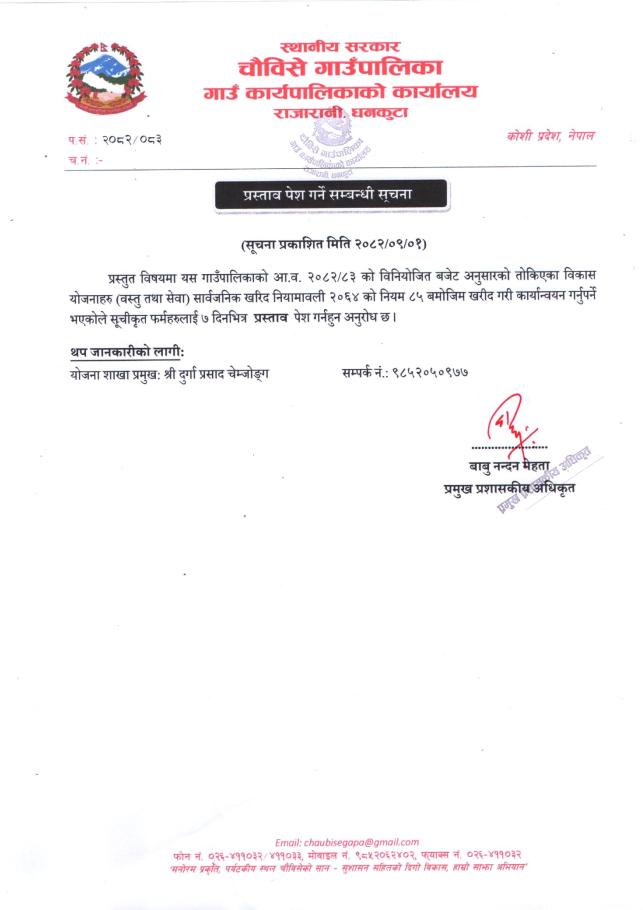 गणक आवश्यकता सम्बन्धी चौविसे गाउँपालिकाको सूचना !!!