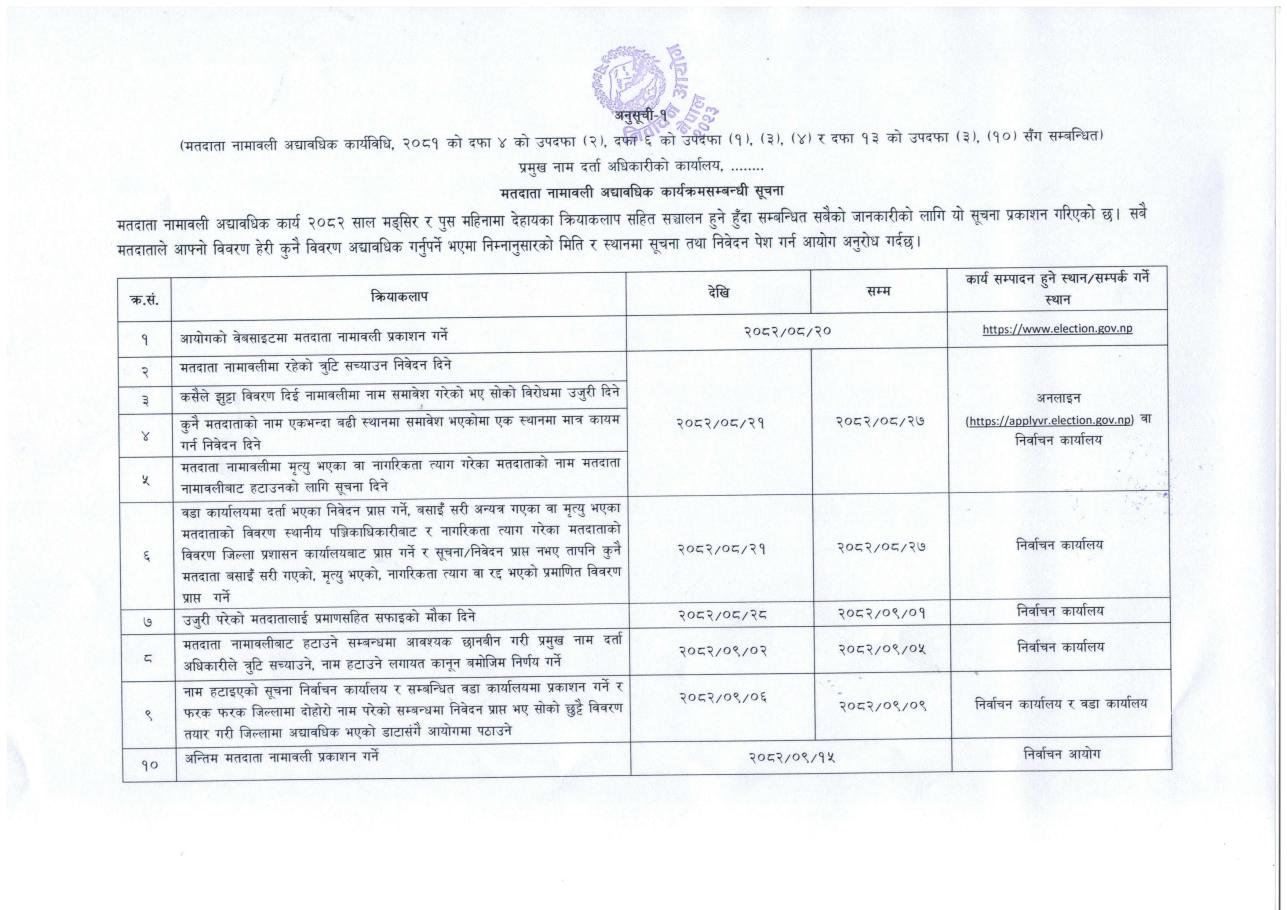 मतदाता नामवली अद्यावधिक कार्यक्रमसम्बन्धी सूचना !!!