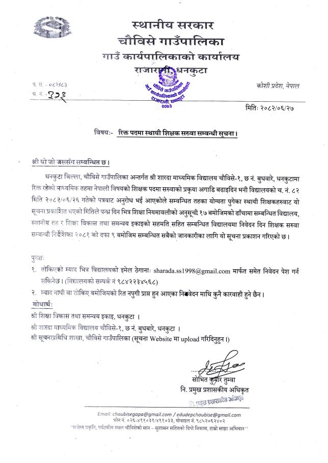 चौविसे गाउँपालिकाको अत्यन्त जरुरी सूचना