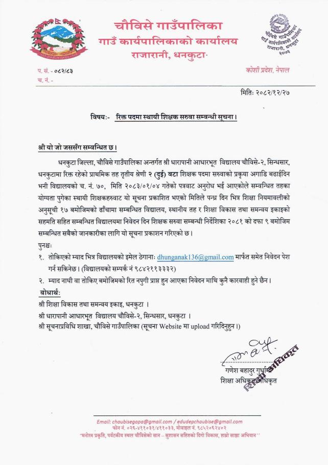 » रिक्त पदमा स्थायी शिक्षक सरुवा सम्बन्धी सूचना