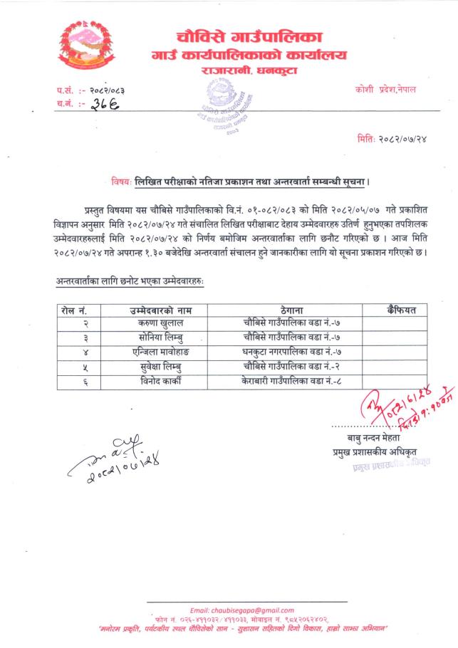 » लिखित परीक्षाको नतिजा प्रकाशन तथा अन्तर्वाता सम्बन्धी सूचना
