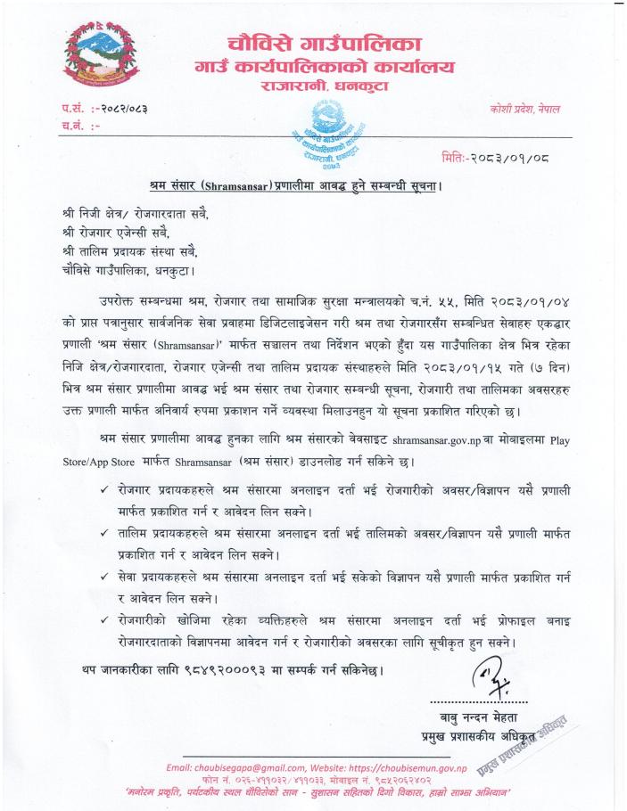 चौविसे गाउँपालिकाको अत्यन्त जरुरी सूचना !!!