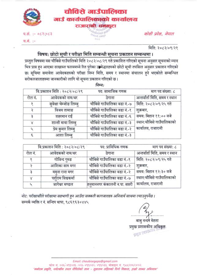 गणक आवश्यकता सम्बन्धी चौविसे गाउँपालिकाको सूचना !!!