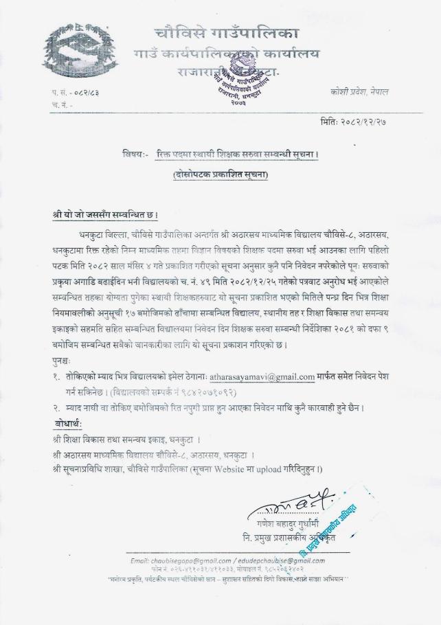 रिक्त पदमा स्थायी शिक्षक सरुवा सम्बन्धी सूचना ।