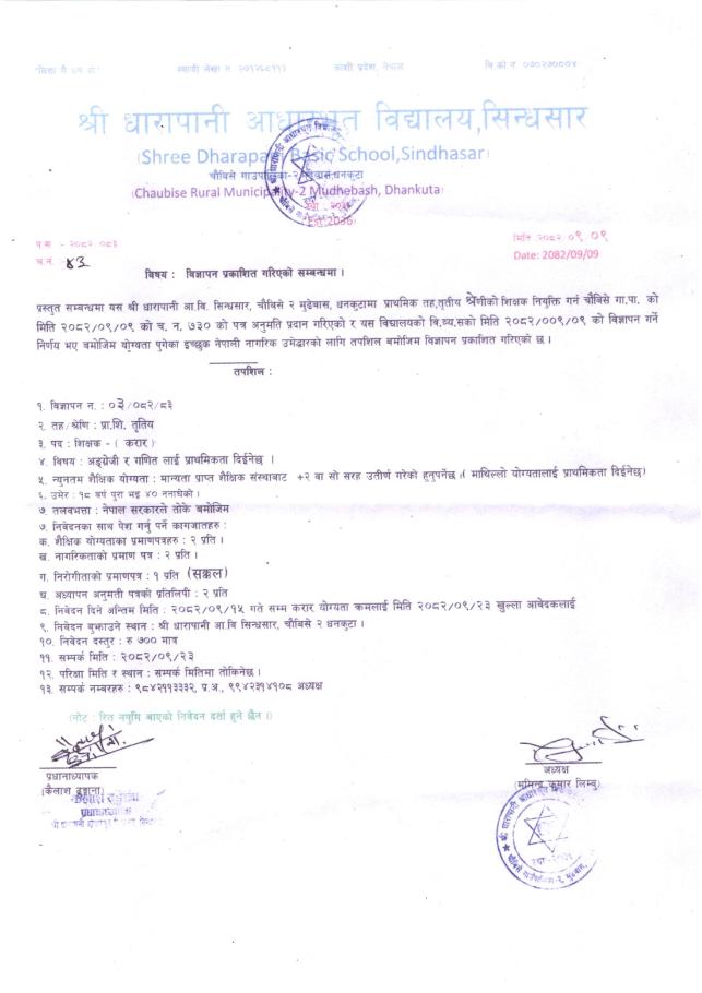 विज्ञापन प्रकाशित गरिएको सम्बन्धमा